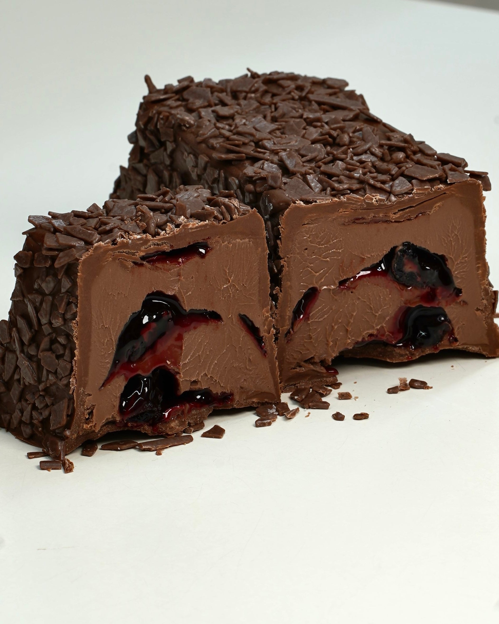 Copertura cioccolato al latte ripieno di morbida, crema al cioccolato al latte e amarene interne